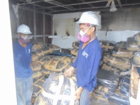 Dismantling, repacking on shipping vessels engine room and wall insulation